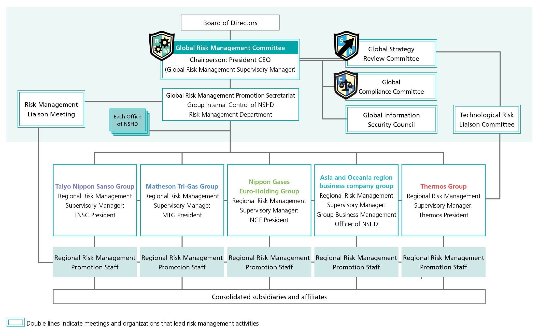 As the Global Risk Management Supervisory Manager, the President CEO has ultimate responsibility for the preparation and implementation of the risk management structure covering all Group companies.