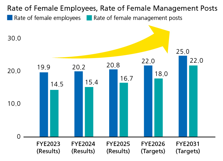 We have set KPIs related to empowering women and focus Groupwide efforts to achieve them. We encourage personnel